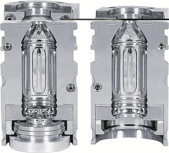 The mold is made of body and base parts, which can be assembled and disassembled quickly and easily, greatly improving the working efficiency, reducing the difficulty of mold maintenance. Modified base part and cooling water way can meet the requirements of cooling base mold when the high speed production happens, greatly reducing the production cycle time. Excellent mold design structure, reasonable mold oil way design can meet the requirements of heat transferring when the molds are used, thus the bottles' performance can be effectively improved. Even though the weight of preform is small, the mold also can meet the requirements of evenly distribution of PET materials and bottles' service performance.